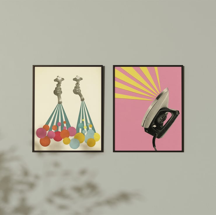 A colourful retro print set. Ideal for the kitchen or a utility room.