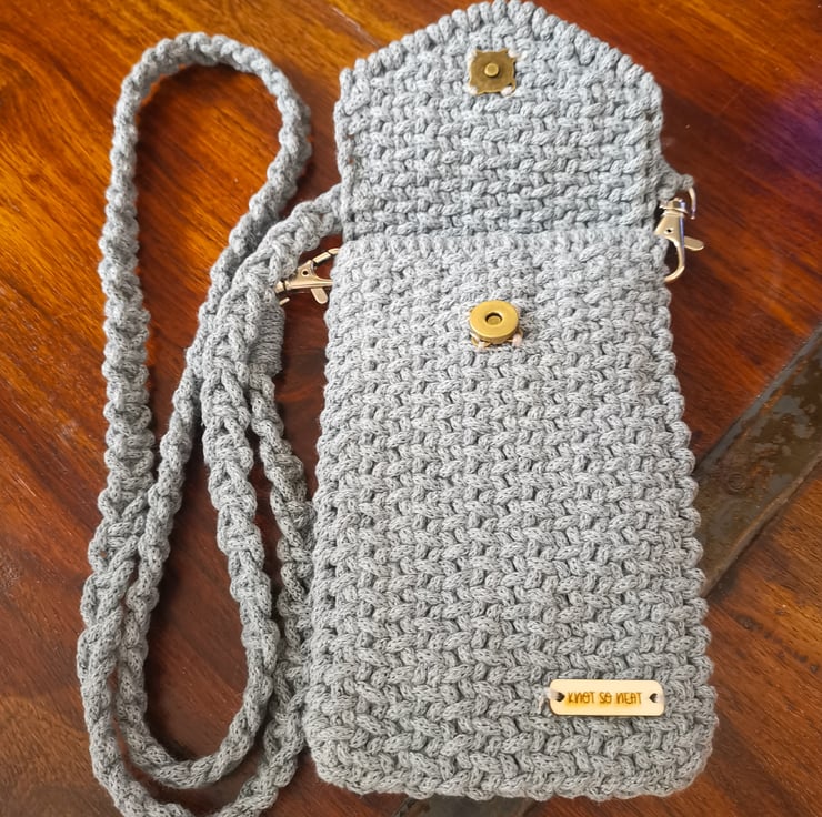 Small macrame crossbody phone bag. Perfect size for a phone credit cards or few small items.
