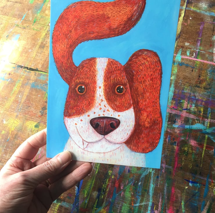 Happy Ears Dog A5 digital print- great for fun nursery decor, children's room etc.