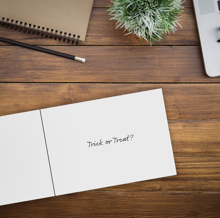 - Printed greeting inside: 'Trick or Treat?'