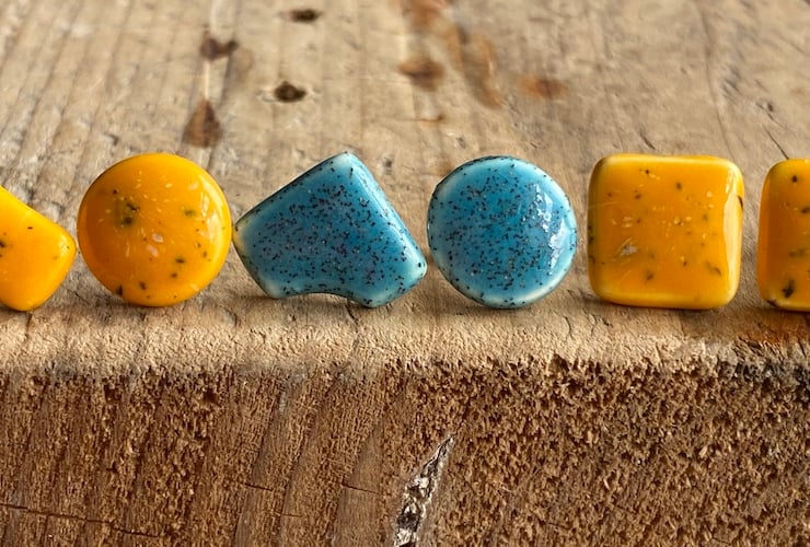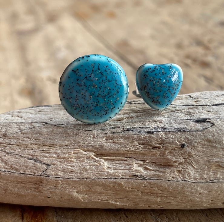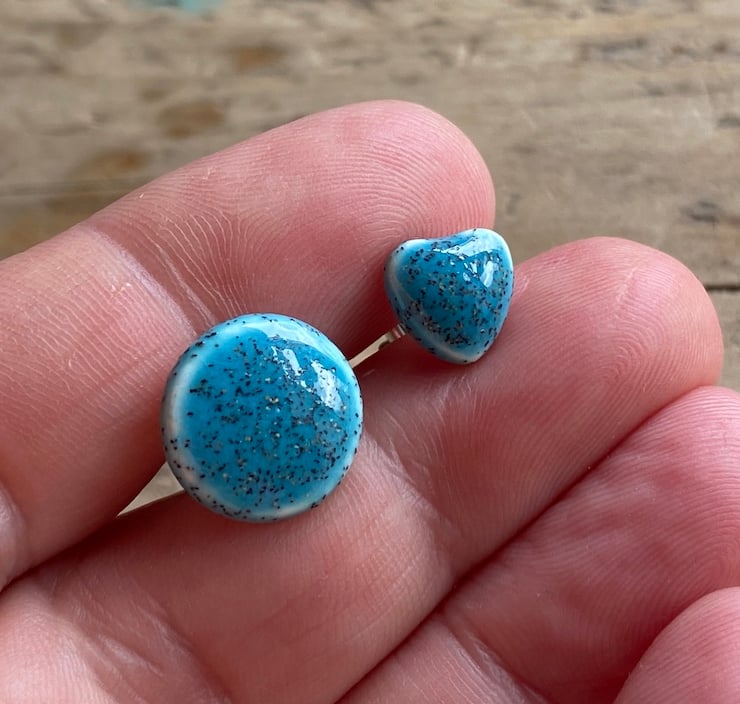 Crafted from Earthenware clay, these beautiful Mismatched studs are individually formed and hand-painted using a Beautiful Hawaiian speckled Blue glaze.
