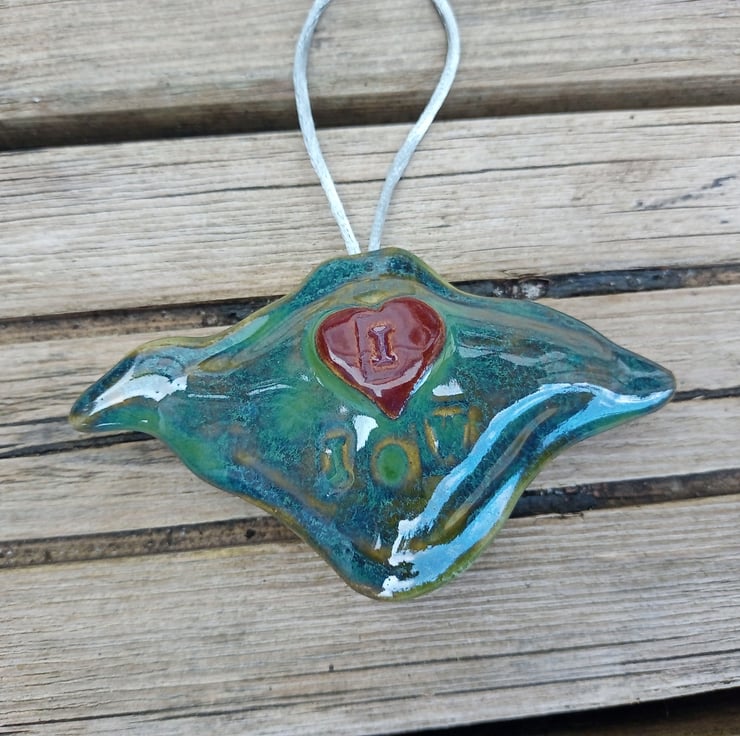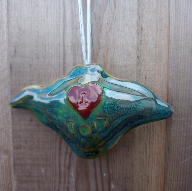 Glazed stoneware hanging ornament, may also be used as a garden cane top or topper. Frost proof, ideal for homes or gardens. Approx. 10.5 X 6.5cm. Handmade items may have some small variations. You will receive one from this batch of glaze firing.