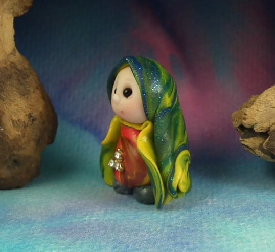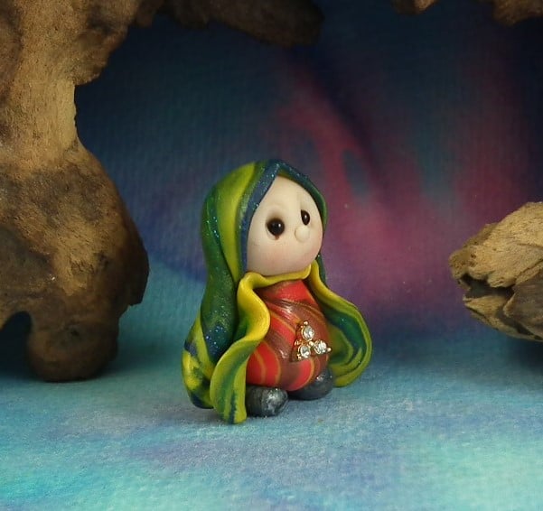 This is a 'one of a kind' creation having been entirely handmade without the use of moulds here at my studio on the Sussex Coast. Modelled with artist blend polymers, blushed before sealing with lacquer, Jessi has sparkling black onyx eyes and garden robes. Jessi the Garden Gnome is just one and a half inches tall.