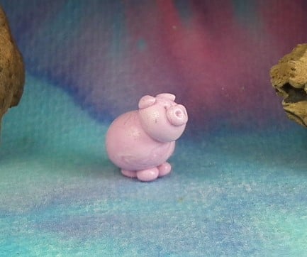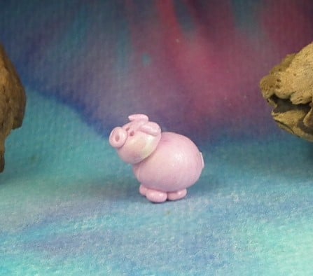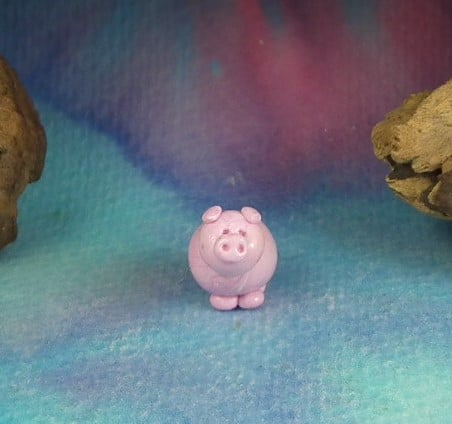 This is a 'one of a kind' creation having been entirely handmade without the use of moulds here at my studio on the Sussex Coast. Modelled with my own blend of polymers before sealing with lacquer, this piglet has sparkling black eyes. The piglet is three quarters of an inch from snout to curly tail.