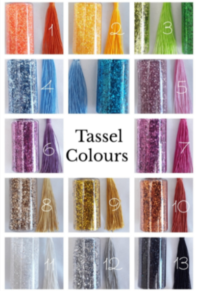 Silk tassel - colours available shown, will match glitter colour as much as I can depending on availability at time of ordering