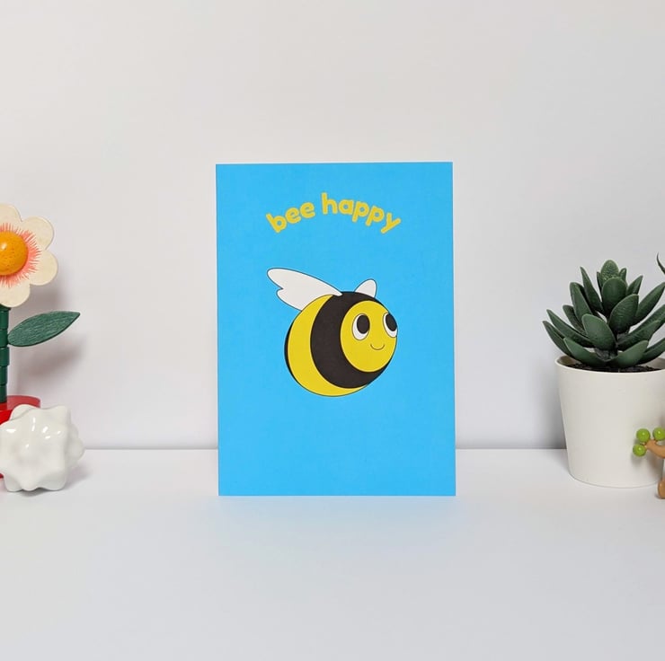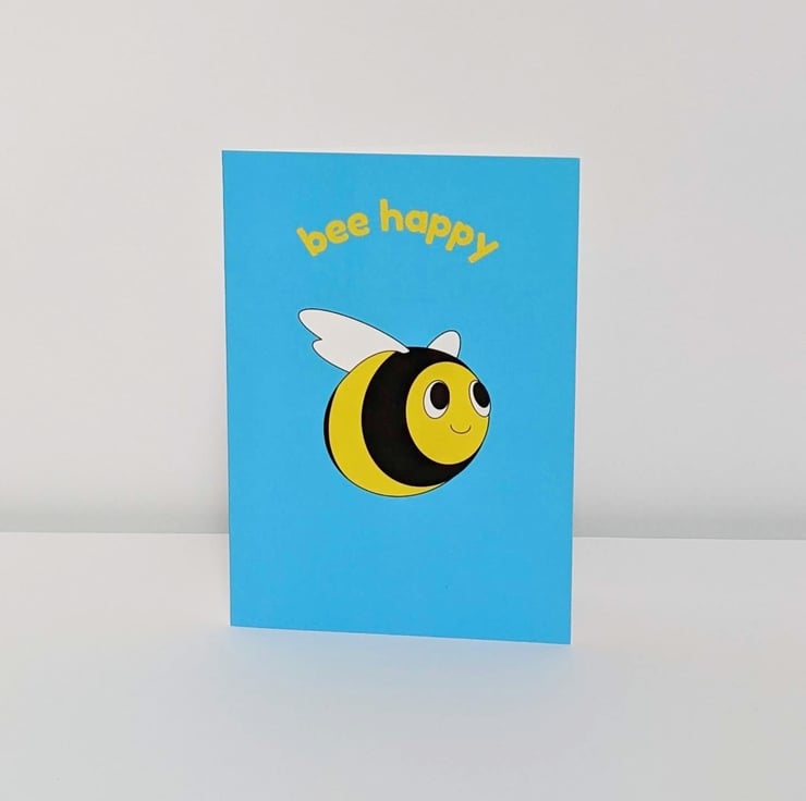 This super cute, bumble bee greetings card will always be gratefully received. It reads, "bee happy" but it is blank inside for you to add your message so it's perfect for any occasion.