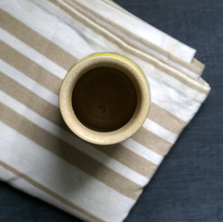 This vase has a flat bottom to sit flush on your kitchen counter and I've hand stamped it with the Little Wren Pottery seal showing its origin as a piece of handmade pottery. This vase can be cleaned in the dishwasher.