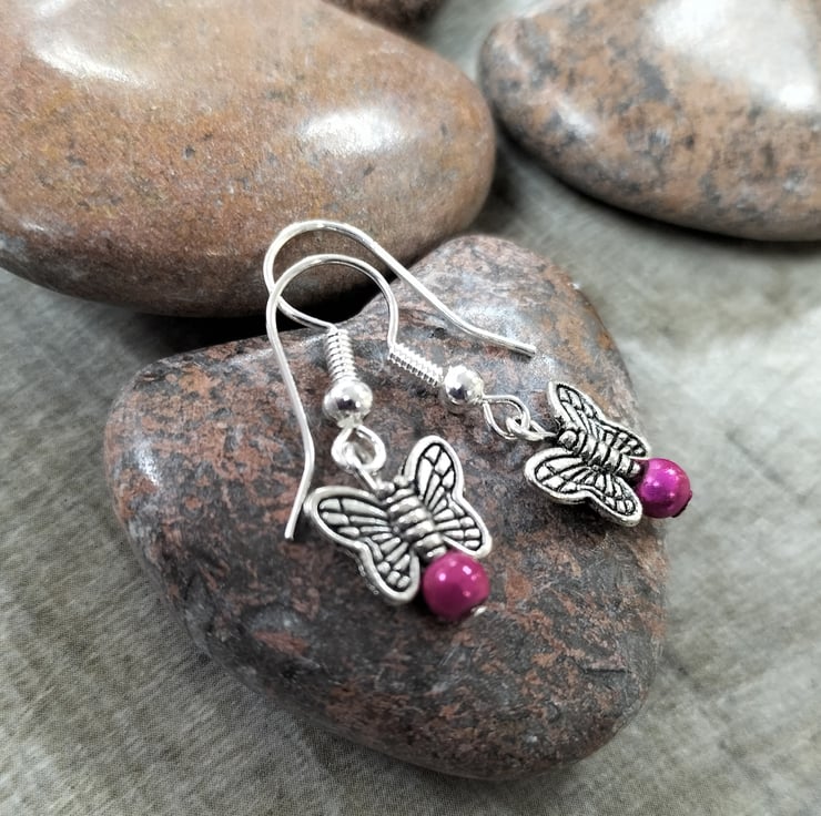 The cute butterfly is 10mm across with a fuchsia pink 4mm miracle bead which come in a pretty organza gift bag.