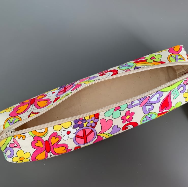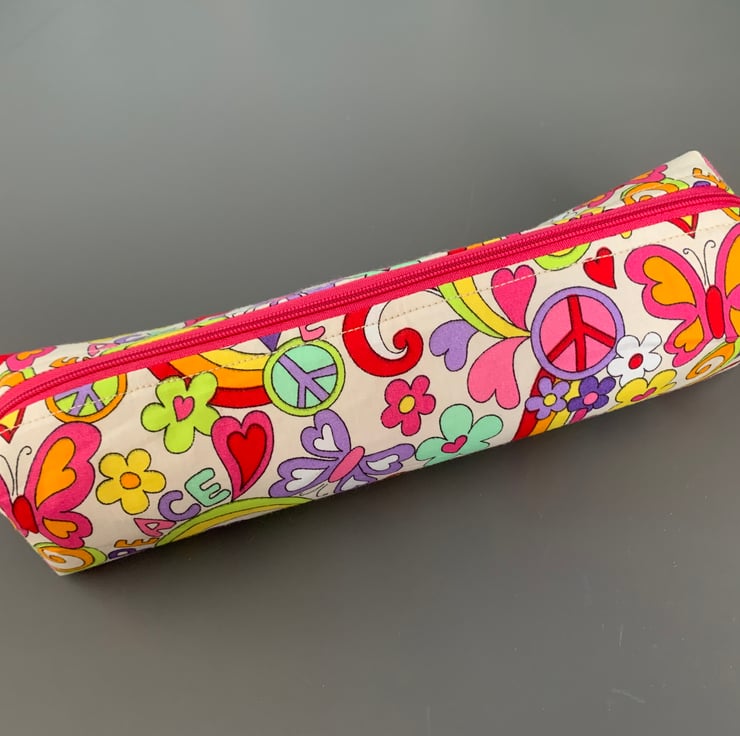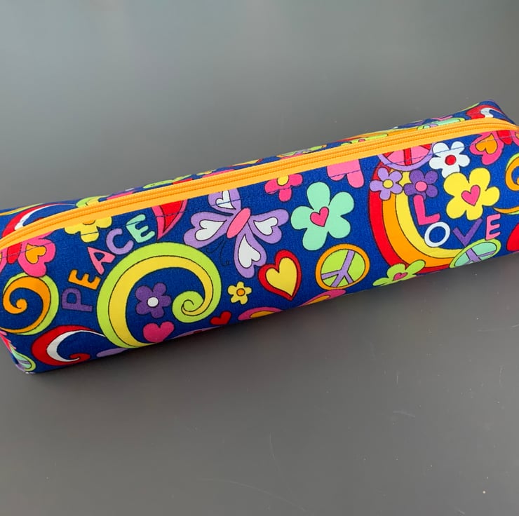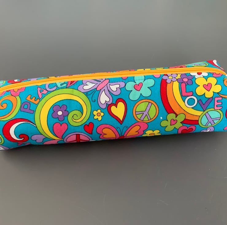 Bright coloured retro style fabric Pencil Cases. with contrasting zip closure, taken from the fabric colours. Please note it is not possible to choose zip colour when ordering.