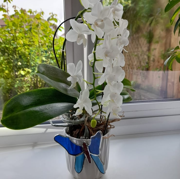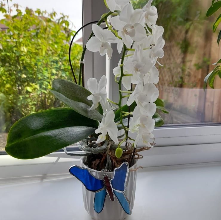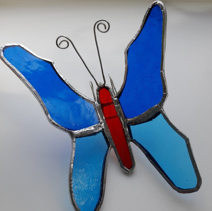 Handmade butterfly - stained glass suncatcher tiffany style free standing or pot hanging suncatcher