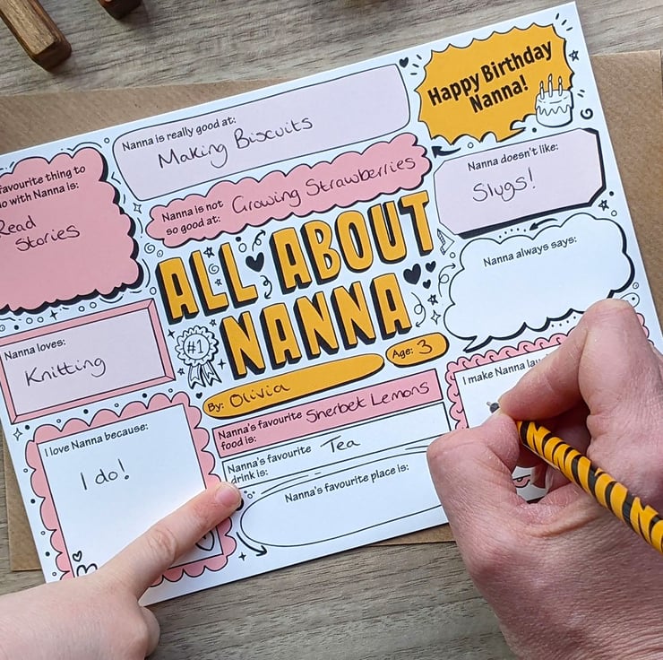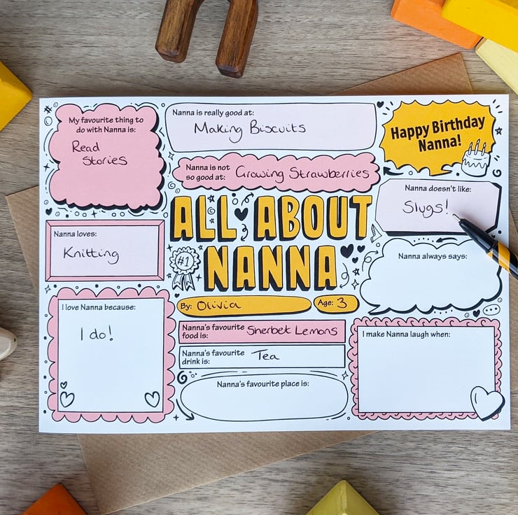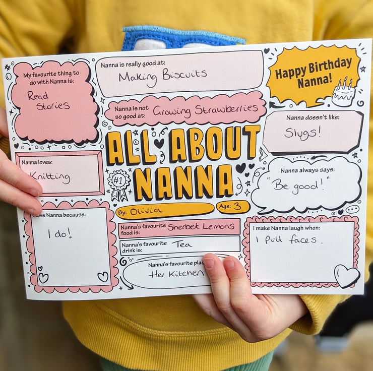 Find out all about Nanna from a child's perspective with our fill in the blanks Q&A birthday card!
