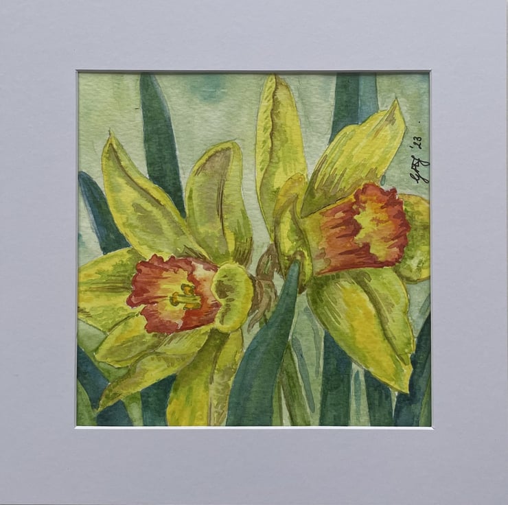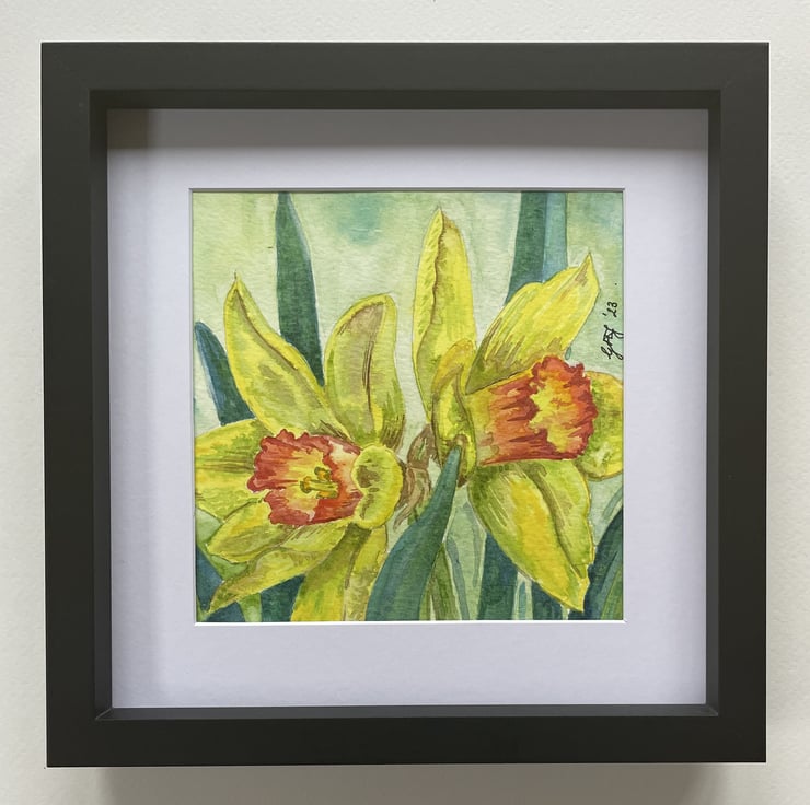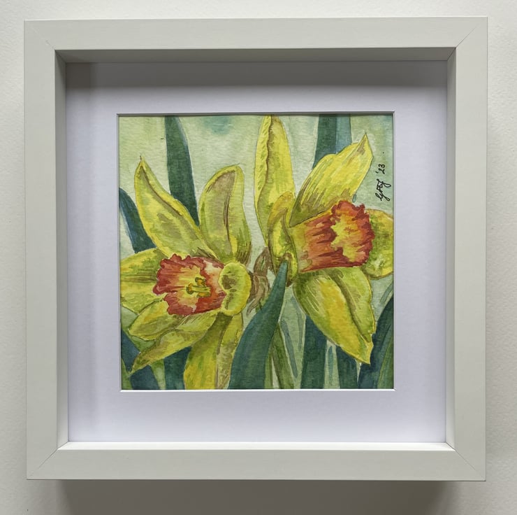 Two Daffodils- an original watercolour flower painting. A zingy yellow snapshot of Spring.