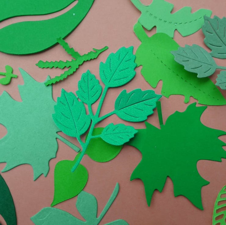 The card weight is 160 to 300gsm. There is a wide variety of different greens used. You will find very pale pastel green, through mid greens up to dark deep green. You will get a balanced and mixed selection to include the entire range of shapes and colours. Please note each individual shape does not necessarily come in each colour, and there may be some duplicates.