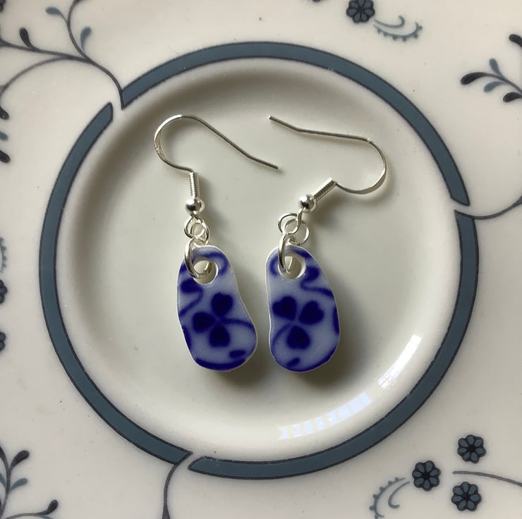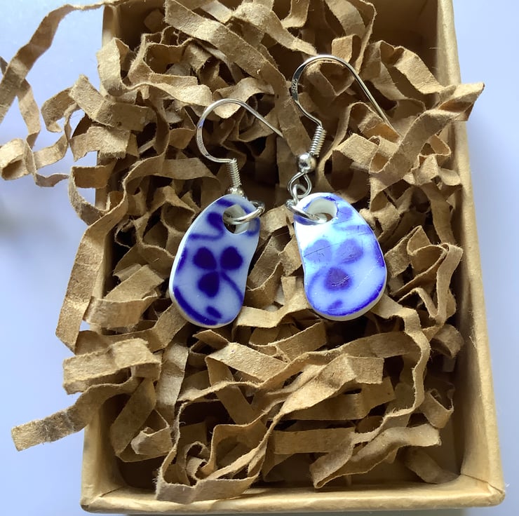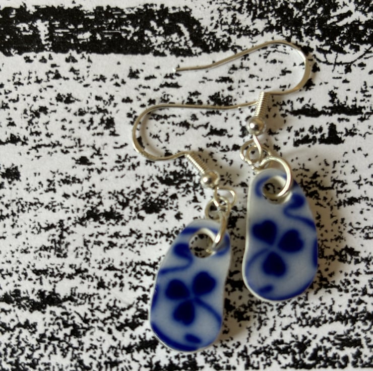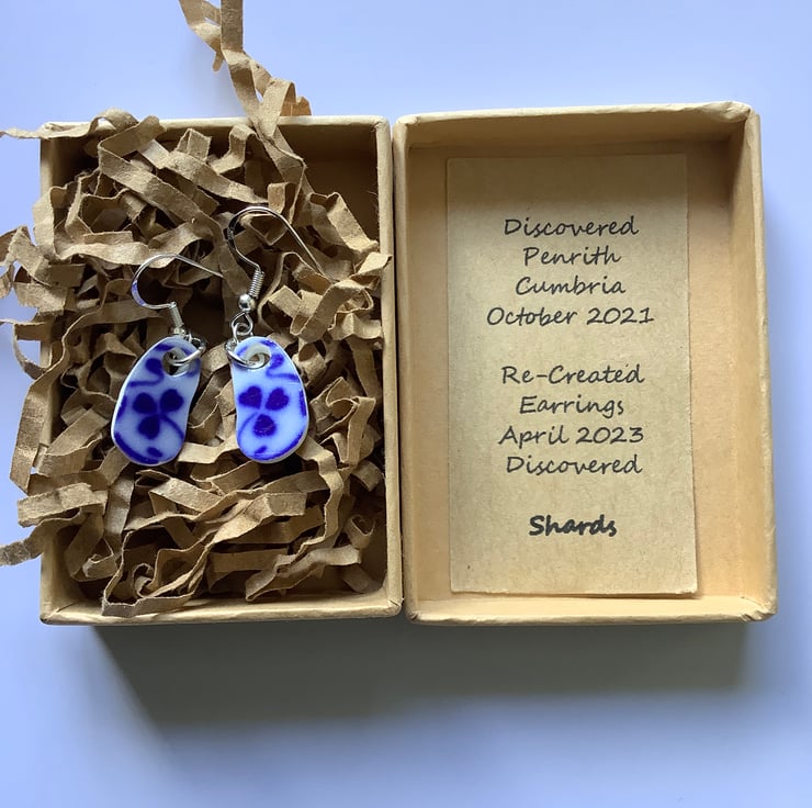 Hand crafted Jewellery and framed artworks using pre loved and discarded ceramics. Ceramic material will show signs of wear and damage. Entire process is a creative experience from discovery to final picture, nothing planned or preconceived. All materials personally collected from river banks, charity shops, roadside, woods, recycle centres, beaches, wherever dropped, dumped or donated ceramics are found, cleaned and shaped into new stories. Each piece comes with a short bio of where the ceramic came from, date found and re-created. Some shards collected are used as found, others are cut randomly which shape the final work. Every piece is individual, nothing replicated, however, due to repetitive patterns in ceramics there will be some similarity but only through the ceramic material not in the final piece.