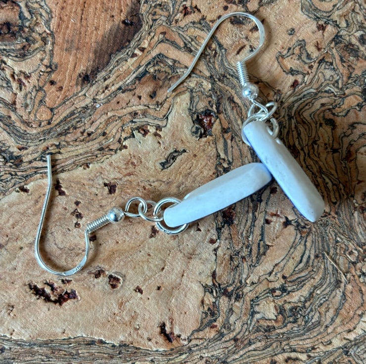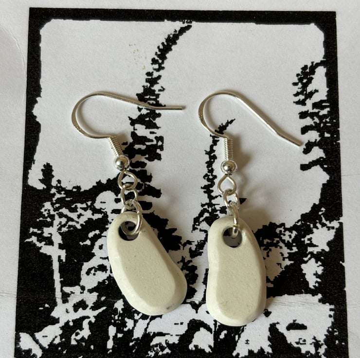I drilled holes and gently clipped into two pieces. Sanded backs, sides and sealed with non toxic eco friendly matt sealant, front glaze in tact. Unique one of a kind earrings.