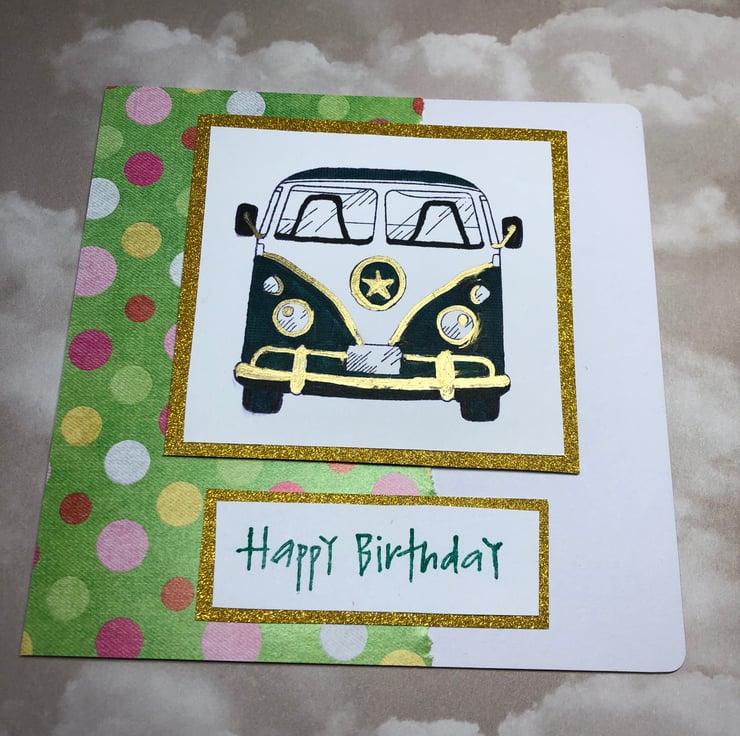 This design is a personal creation rendered with stamps and ink. created especially for a birthday, the inside is left blank for your own personalized message.
