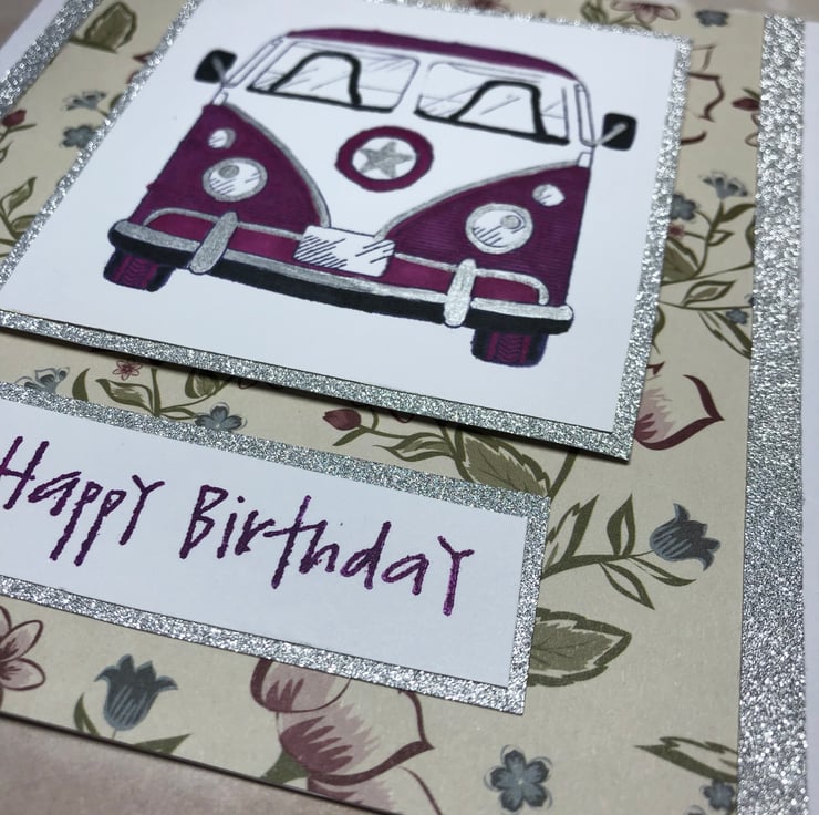This design is a personal creation rendered with stamps and ink. created especially for a birthday, the inside is left blank for your own personalized message.