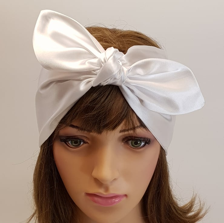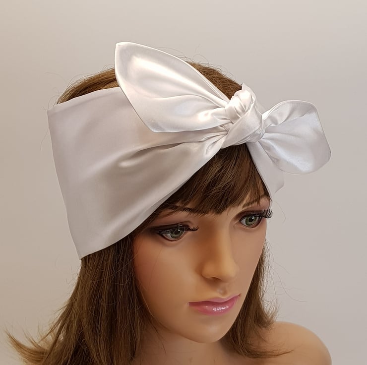 White satin hair wrap, silky head wrap, shine hair bandanna, rockabilly headband