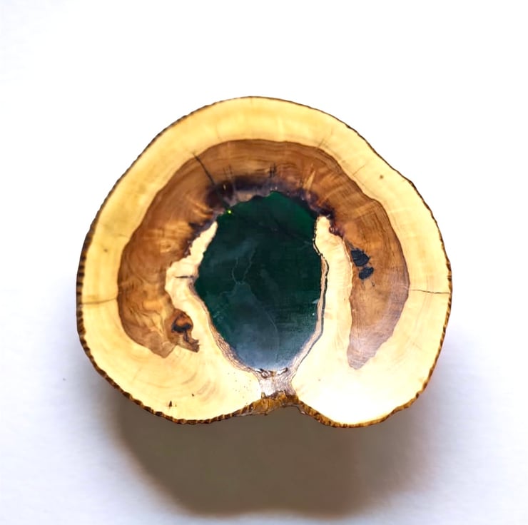 Side table made with wood and transparent epoxy resin.