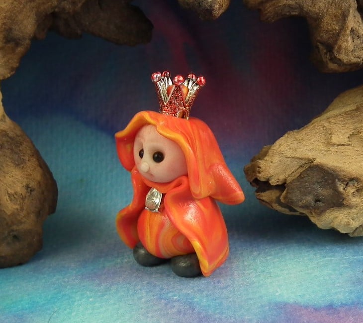 This is a 'one of a kind' creation having been entirely handmade without the use of moulds here at my studio on the Sussex Coast. Modelled with artist blend polymers, blushed before sealing with lacquer, Henry has sparkling black onyx eyes and variegated robes. King Henry is just one and a half inches tall.