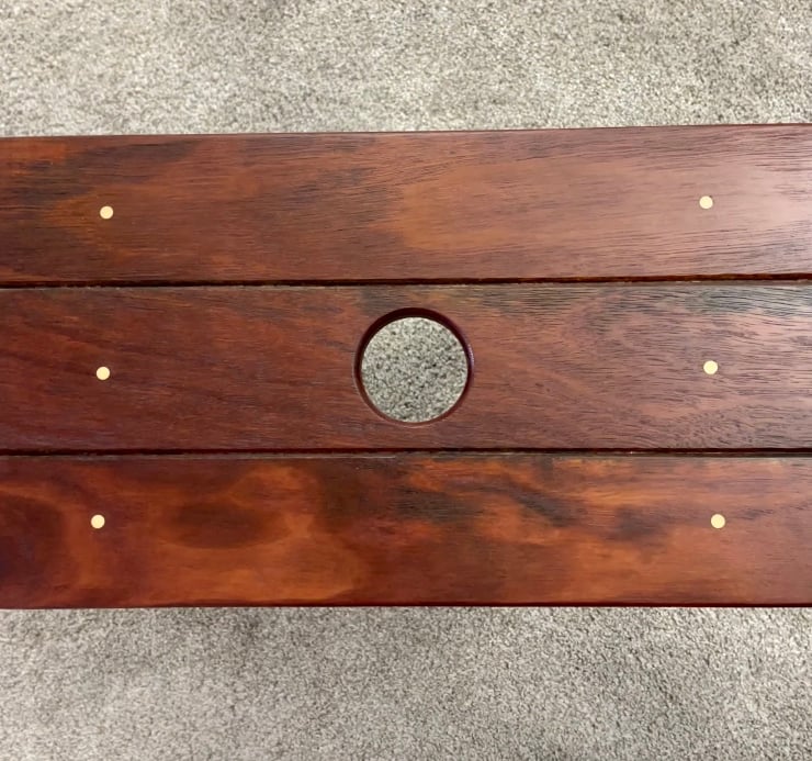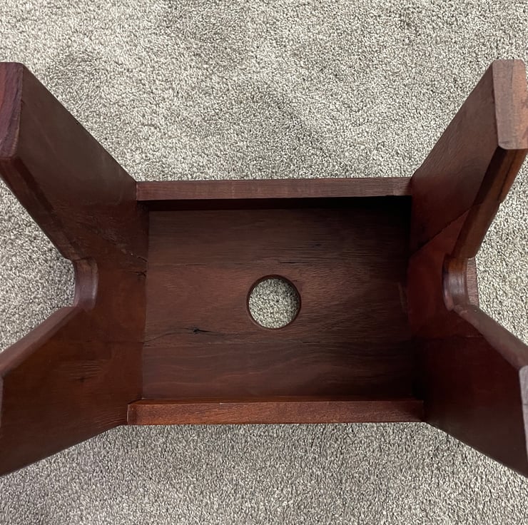 Hand made from reclaimed, solid mahogany. This one is heavy as mahogany is a very hard wood. Finished with Osmo Polyx to give a durable coating.