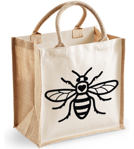 Manchester Bee Midi Jute Bag - Bee ( loveheart)
