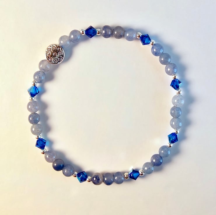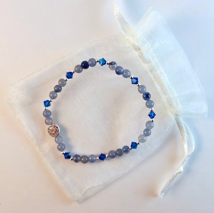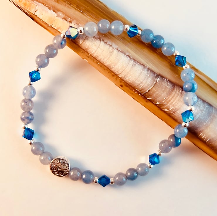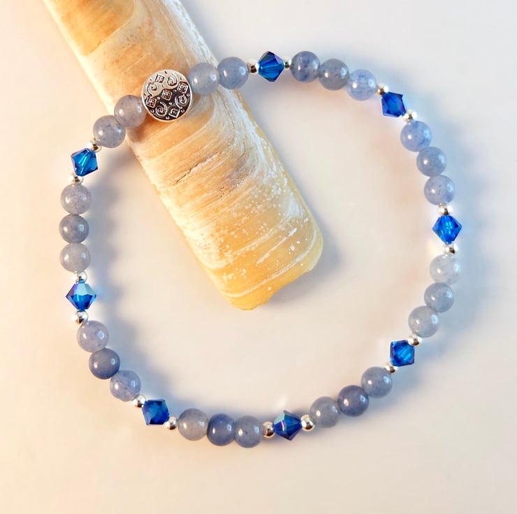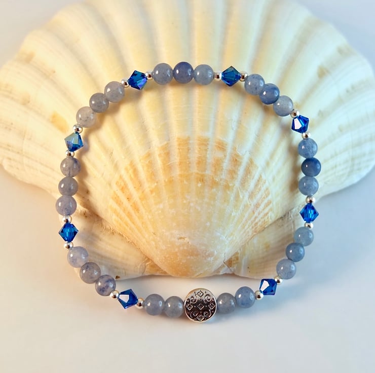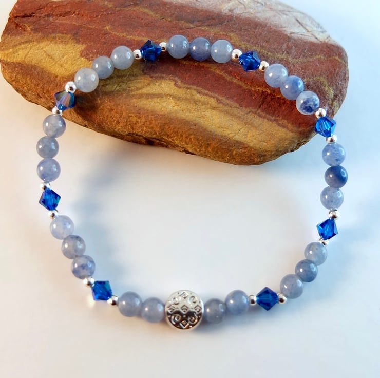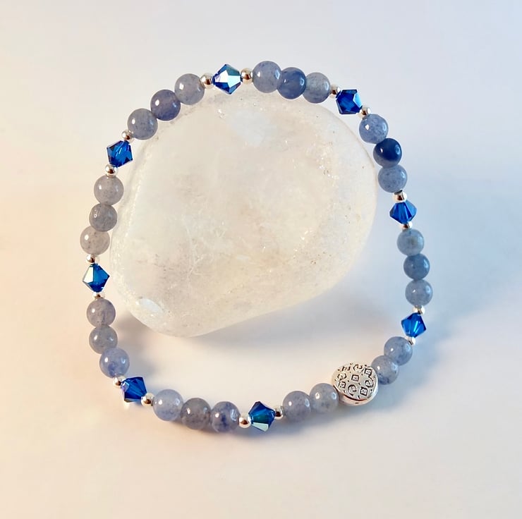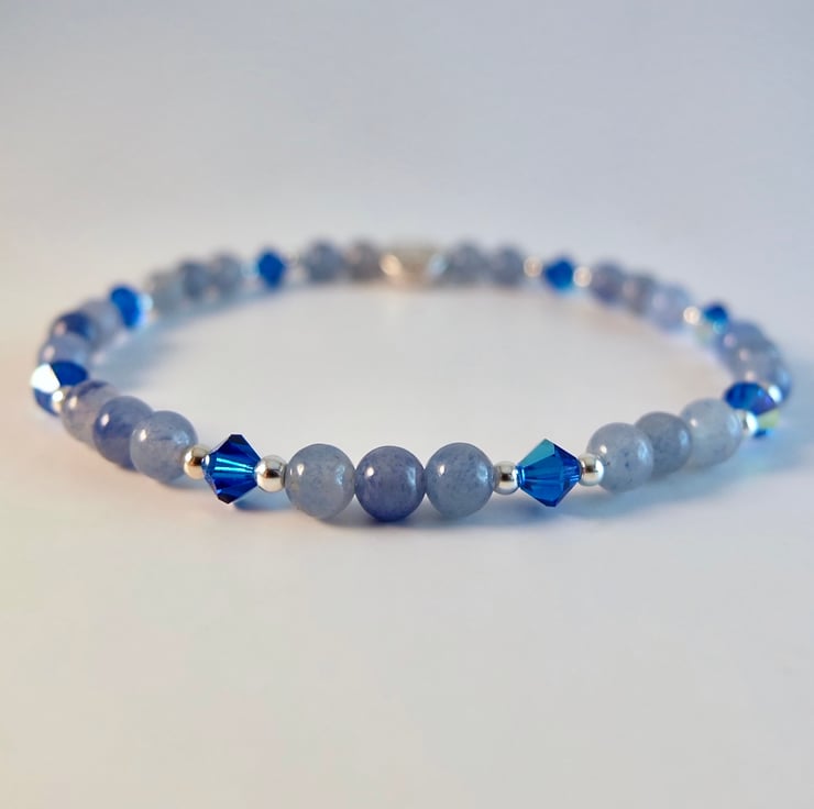 Blue Aventurine Bracelet With Swarovski Crystals - Handmade In Devon