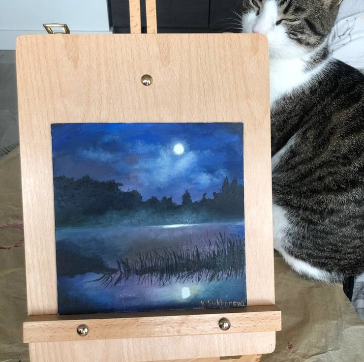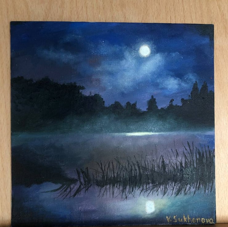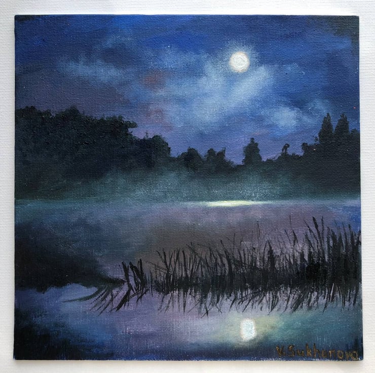 Original oil painting of the pond over the moon.