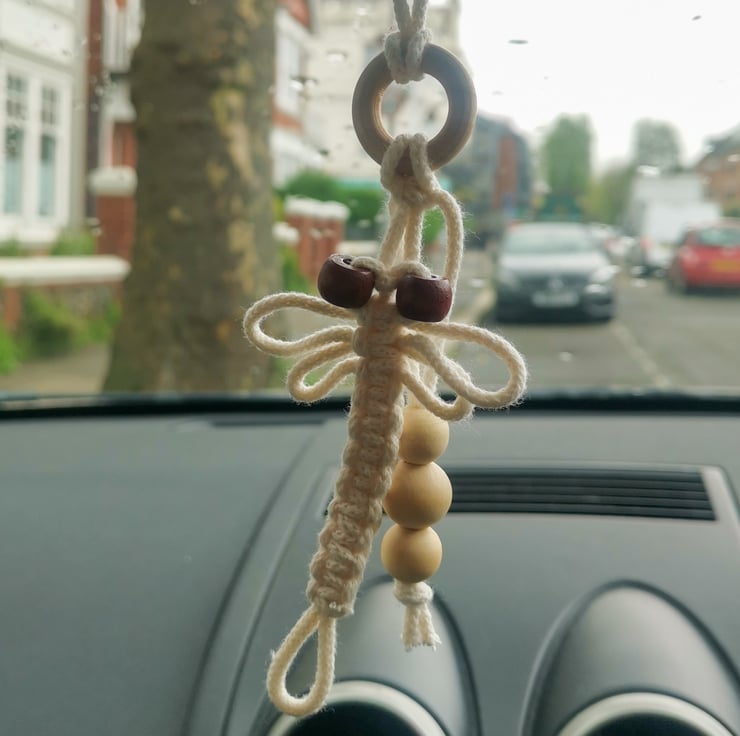 Handmade macrame car rear view mirror diffuser, boho look and nice smell for your car.