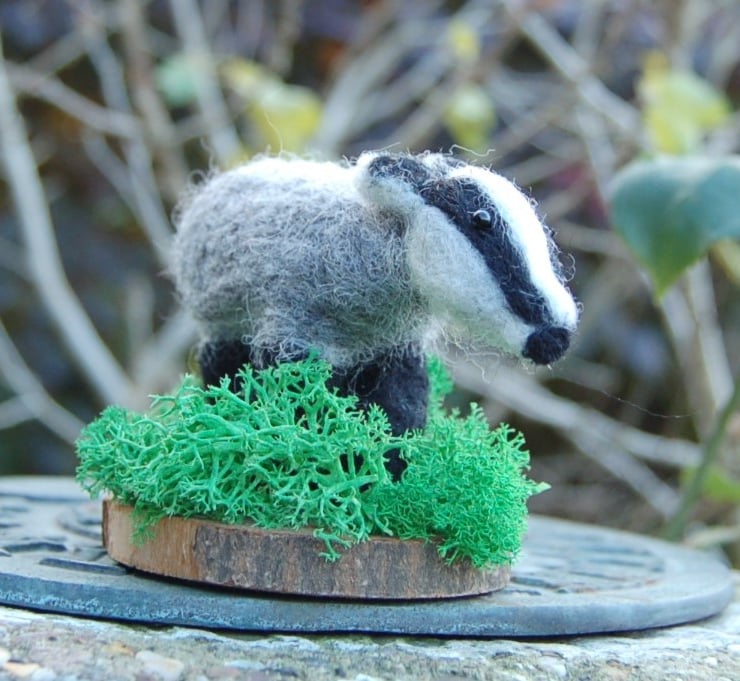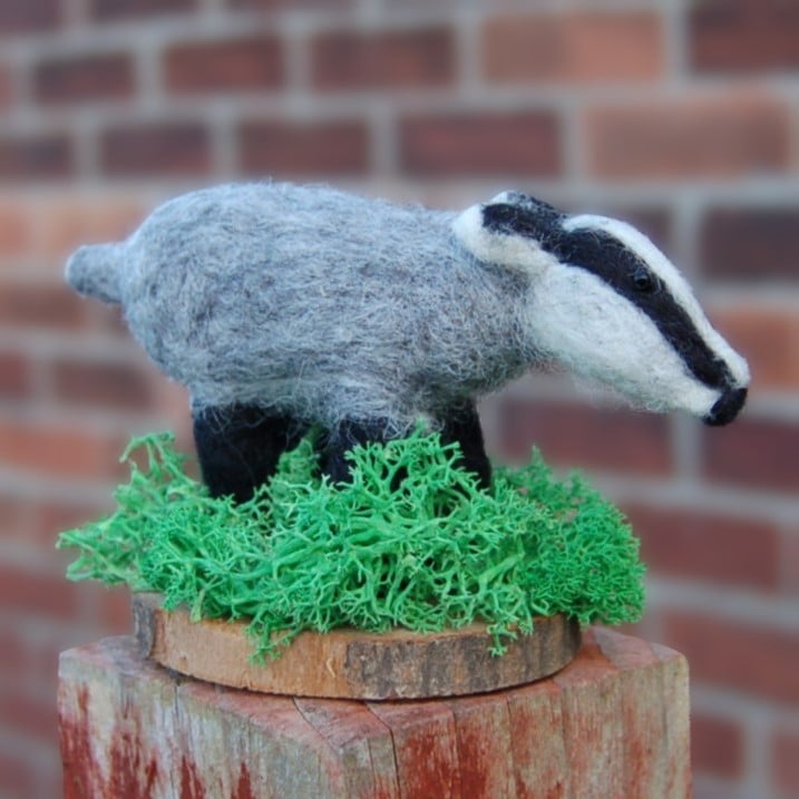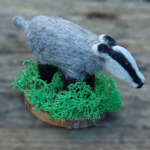 Made from sheep's wool fibres and needle felted into shape. Mounted on a wood slice with reindeer grass.