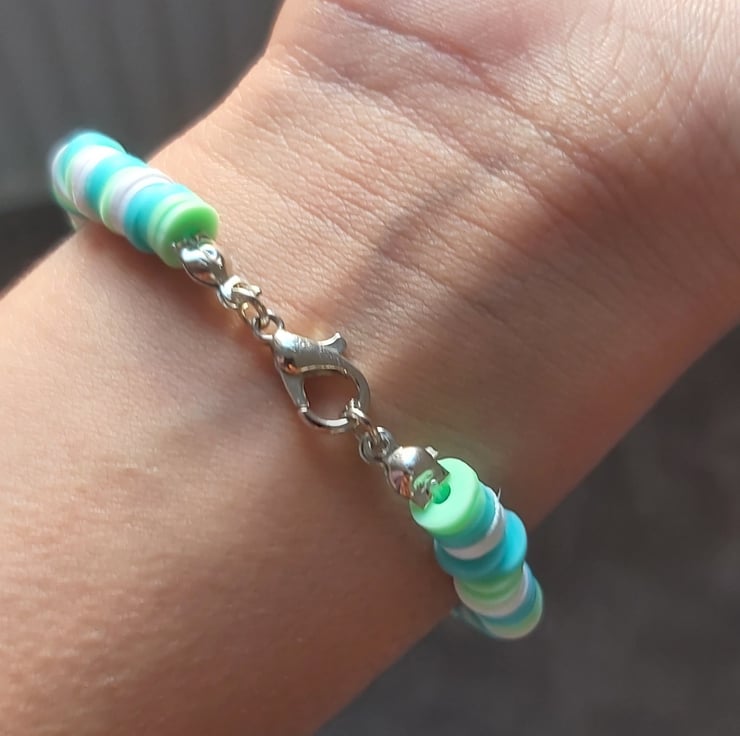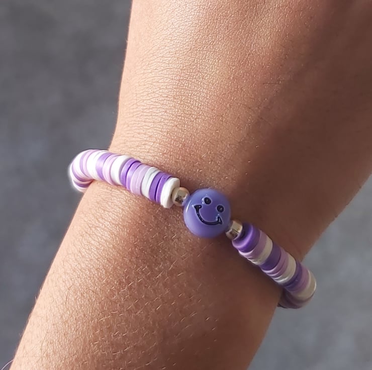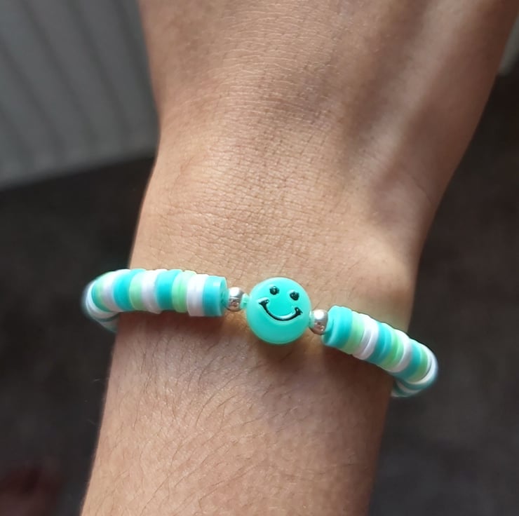 Cute smiley face clay bead bracelet can come in different colours, eg blue