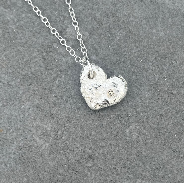 Pebble Heart Pendant, heart necklace, silver and gold necklace, pebble necklace,