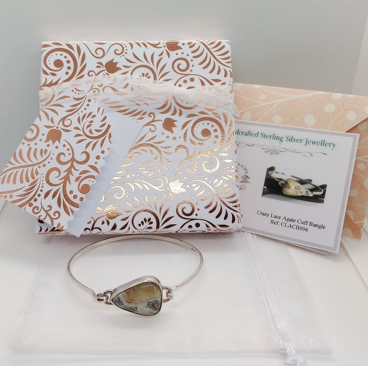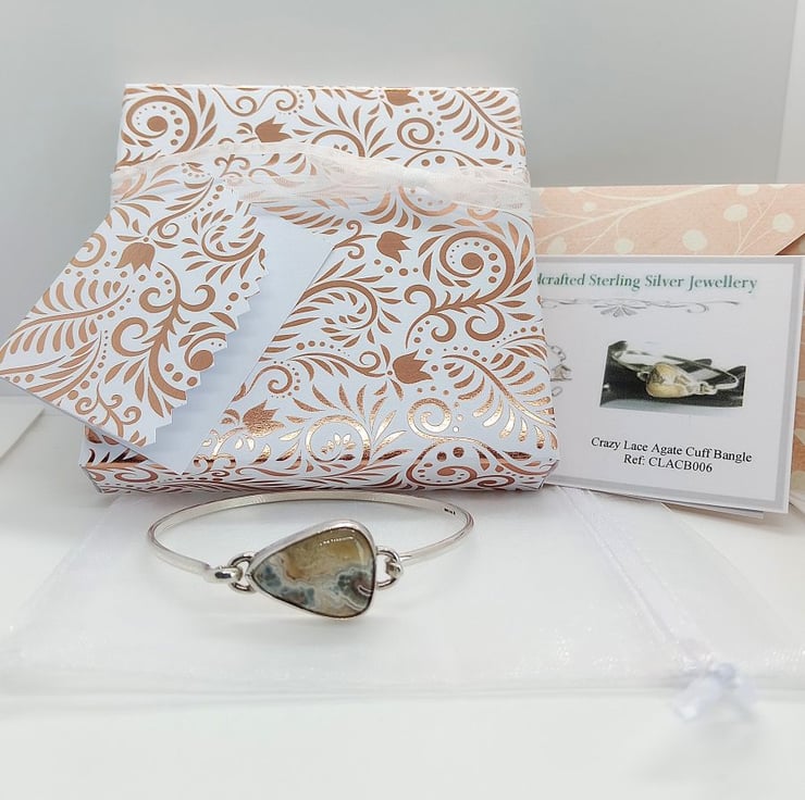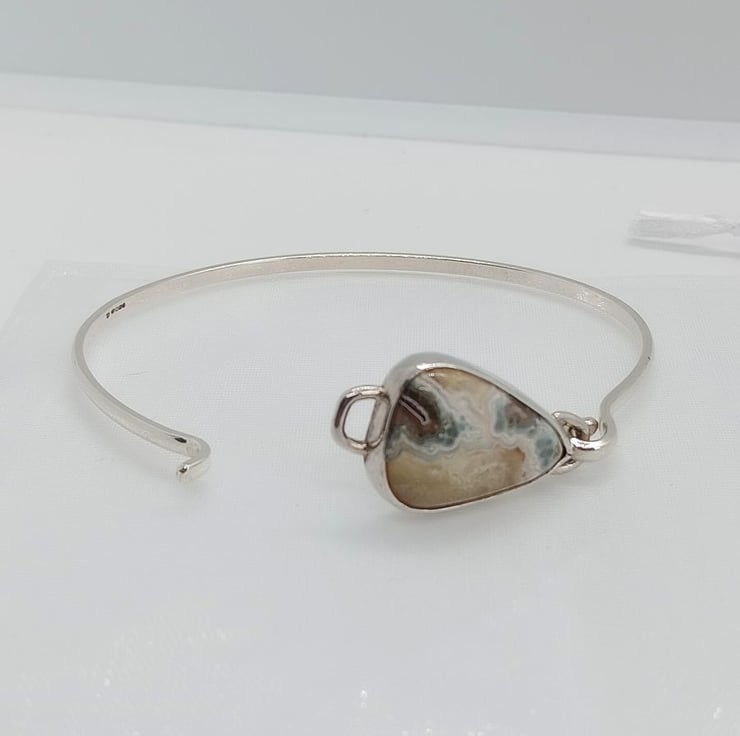 Sterling Silver Bangle Crazy Lace Agate Gemstone  fully Hallmarked