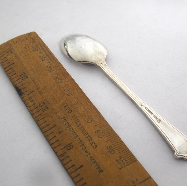 You will receive the spoon shown in the pictures. It's approx. 11.5cm long and the lettering is coloured black with water-based, non-toxic acrylic ink. Please note it is vintage and pre-owned so it does have a few signs of age and wear. (I didn't realise it also had tarnish on the handle until I took the photos - it looks much shinier in real life but anyway I promise it will have been polished before I despatch it!)