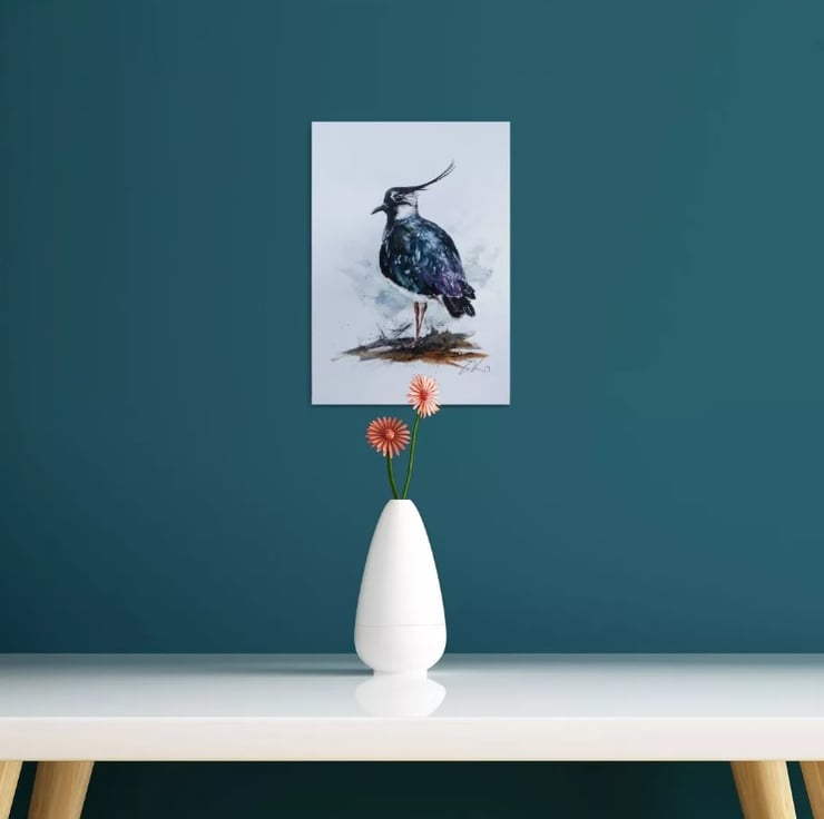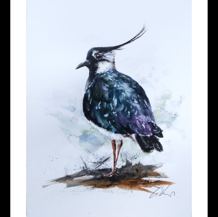 Lapwing, high quality Giclée Print of my original watercolour painting. A4 size, 21x29cm with an additional 1cm border.