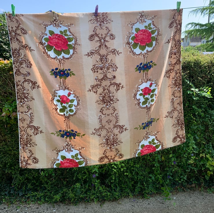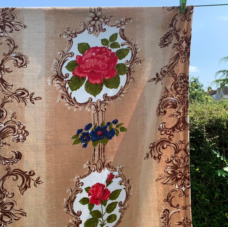 Vintage Fabric Hollywood Regency Mid Century ROSES 50s 60s Cottage Core