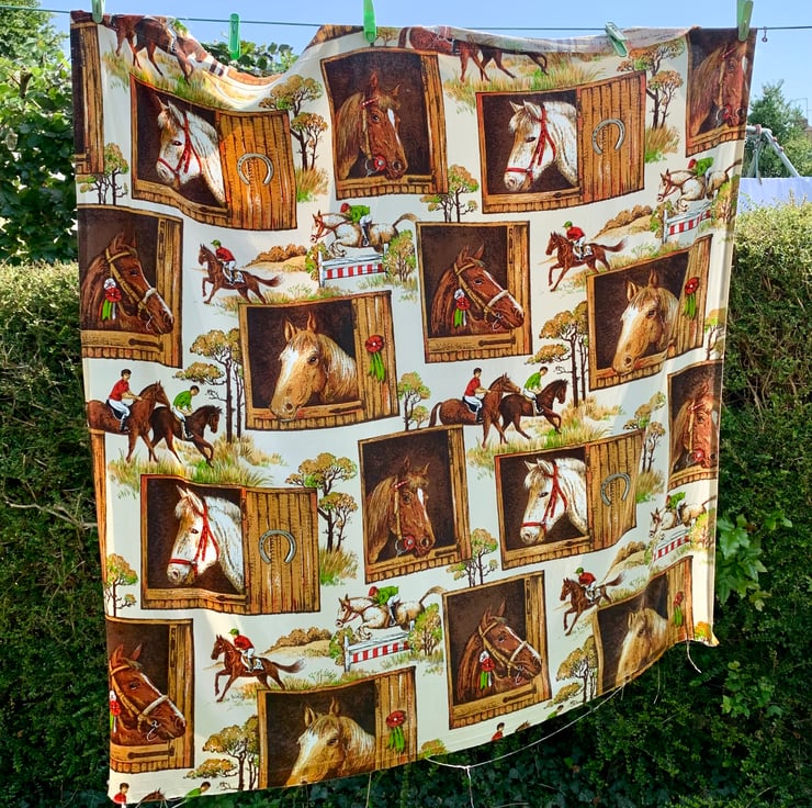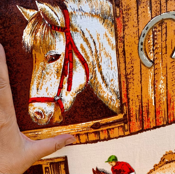 Vintage Fabric RETRO 60s 70s Pony Stable Horse riding Equestrian theme