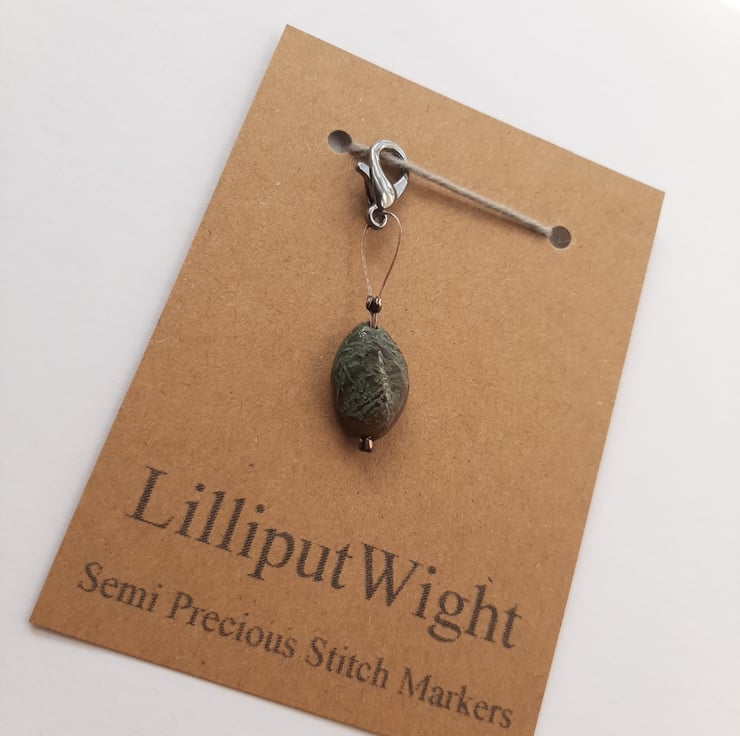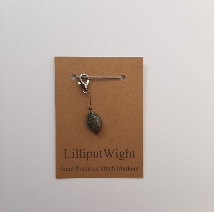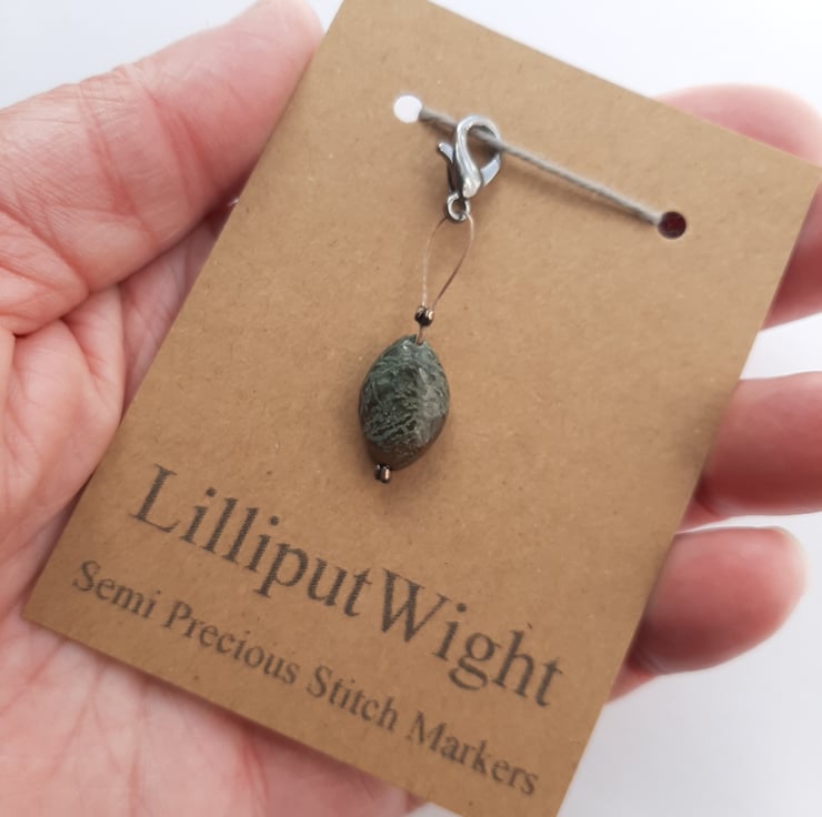 A single stitch marker made from a semi precious stone, for use in crochet or as a progress keeper in knitting.