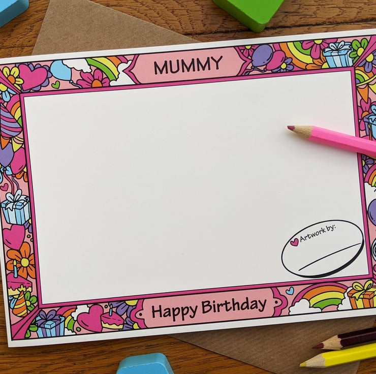 Simply hand the card to your child and let them draw within the frame on the card, write in their name and voila you have a totally unique and special birthday card!