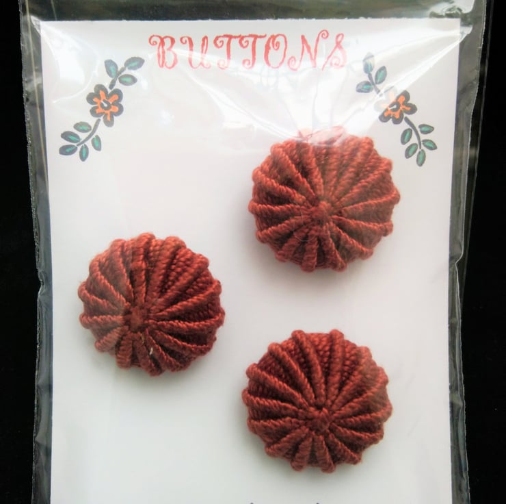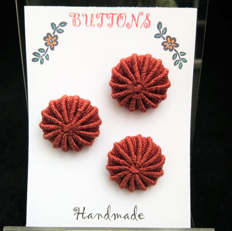 Handmade Embroidered Yorkshire Style Covered Buttons. These Handmade Buttons have been embroidered using Perle Cotton Thread. Tightly Covered over a plastic button mold. Washable on a gentle wash