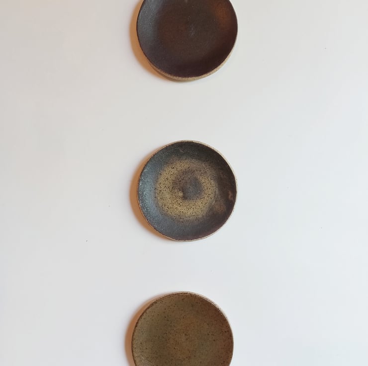 These versatile little dishes are handmade with Laguna stoneware clay and covered with toasty brown, burnt russet and burnt olive glaze.