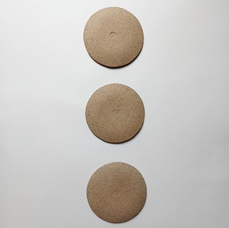 Plates are made individually by hand. Each dish is formed and shaped from rolled out slabs of clay then wheelthrown and fired in a kiln to over 1240 c.