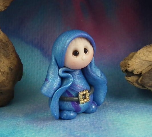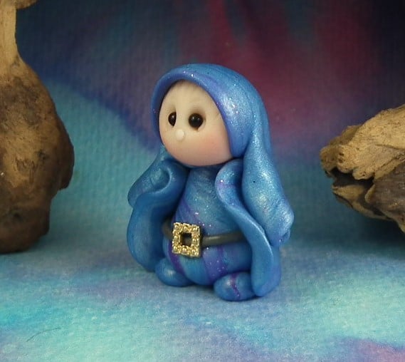Spring Sale! Fliss is a tiny Garden Gnome with flowing robes and golden buckle ...