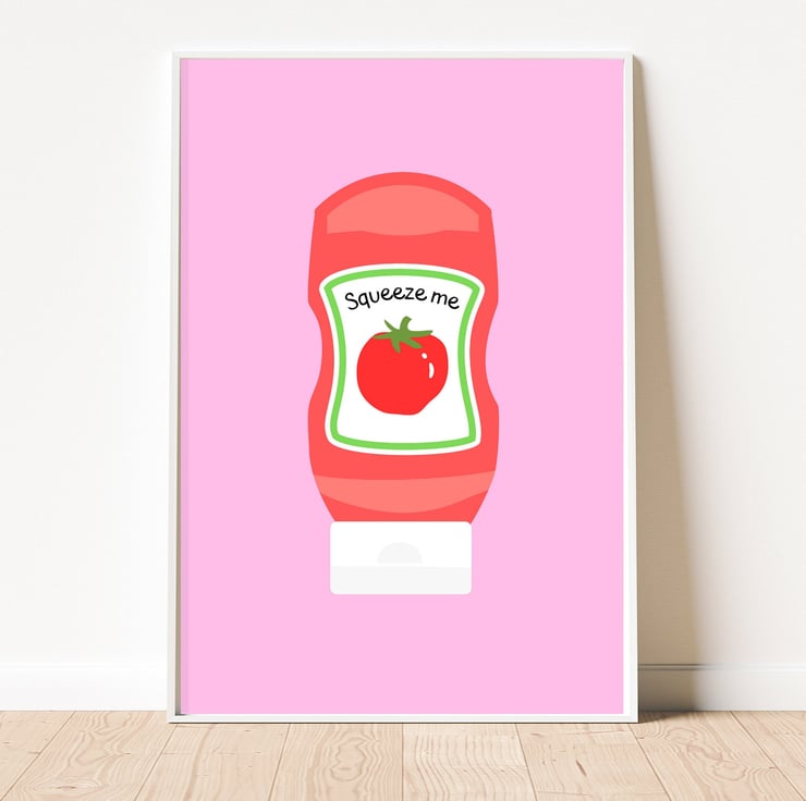 This bold kitchen print is perfect for any ketchup lovers or as a statement piece for a colourful gallery wall and is available in sizes A3, A4, A5 8x10" 5x7"
