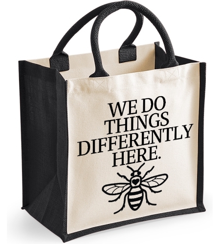 Manchester Bee Midi Jute Bag - We Do Things Differently Here