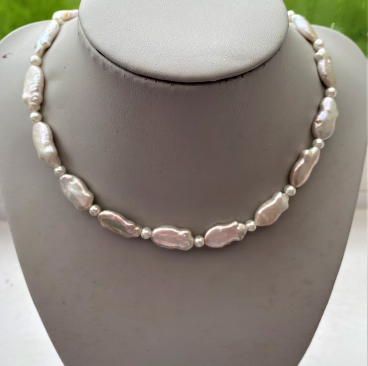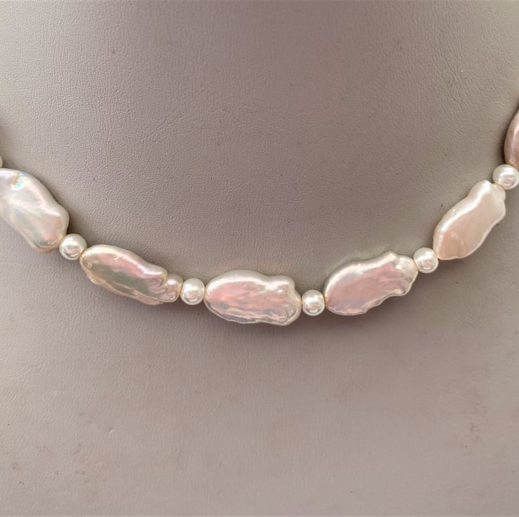 I have hand strung these Beautiful Pearls using Keshi Fish shaped Pearls, with small white pearls in between.