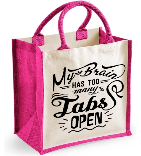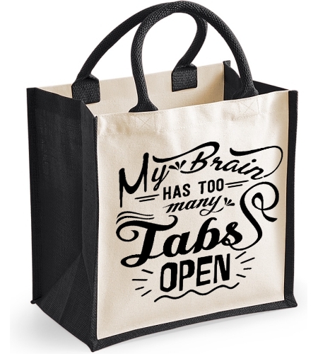 My Brain Has Too Many Tabs Open -  Midi Jute Bag