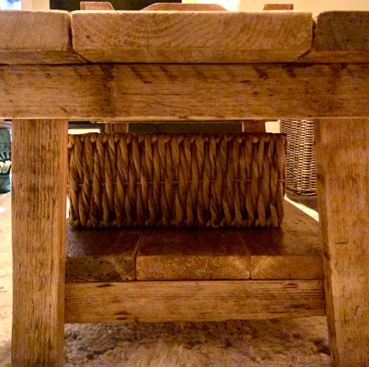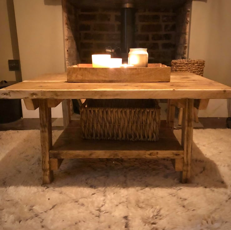 Rustic farmhouse coffee table. Handcrafted from locally sourced, reclaimed pine and finished with a beautiful, clear, satin varnish. Scuffs, open-grain and nail holes are a common characteristic and make this charming piece perfectly unique.