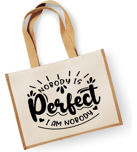 Nobody Is Perfect, I Am Nobody Large Jute Shopper Bag