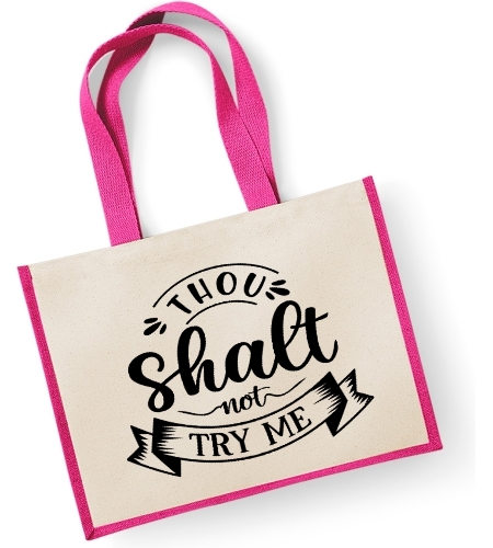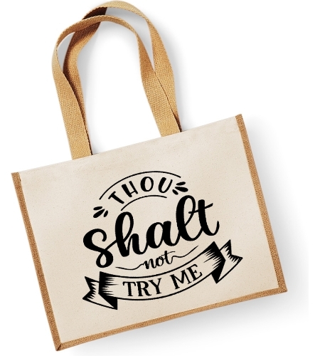 Tho Shalt Not Try Me -   Large Jute Shopper Bag